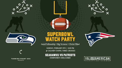 Please join us for a SUPER amazing time of food and fellowship. We will even be tuning into the Turning Point USA half-time show! Stop by the table in the lobby and sign up for one of the requested menu items!